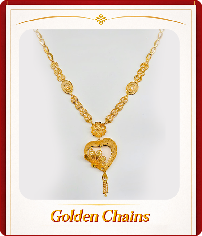 We offer all varieties of 916 Hallmarked HUID gold jewellery including chains, haarams, necklaces, rings, pendants, studs, jimukkas, and antique designs. Our collection includes traditional, Kerala, fusion, and modern styles crafted for weddings, daily wear, and special occasions. Each piece is designed with precision, ensuring purity, durability, and timeless elegance.